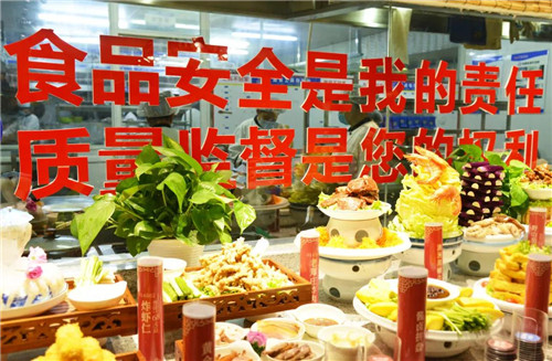 荤素分区,从加工操作到烹饪煮炒,都是肉眼可见的干净卫生,配料分装在无菌保鲜盒内,炊具一菜一清洁,环境地面定时菌消毒等等…正如宗旨中提到的:“食品安全是我的责任,质量监督是您的权利。”