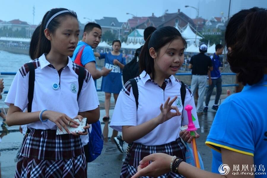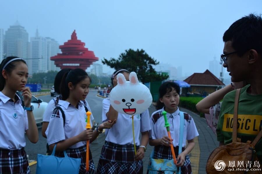 来五四广场上游玩的家长和小朋友非常支持学生们的义卖活动。