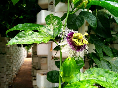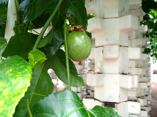 这个可厉害啦,上面开的的是百香果的花,下面的就是大名鼎鼎的百香果啦