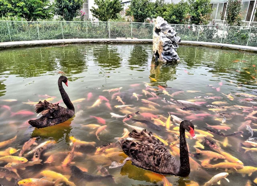 黑天鹅公主和锦鲤和谐相处,画风有点魔幻