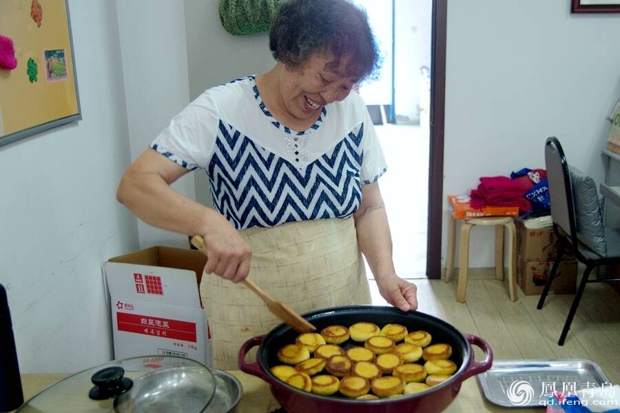 “玉米饼子在过去的时候是给家里主要劳动力吃的,这样他们才能有力气干活,其他人只能吃菜饼子,现在玉米饼子是咱们调理身体的好东西,应该多吃粗粮。”李建美阿姨一边轻轻的将玉米饼翻个儿,一边回忆当年。“这个玉米饼子是有配方的,必须按照比例来才好吃,两份玉米面,一份小米面和一份豆面,再加点小苏打,混合揉匀以后醒发一个小时,然后才能下锅。”八大湖幸福中心的社工綦美杰告诉记者烹饪的小秘诀。