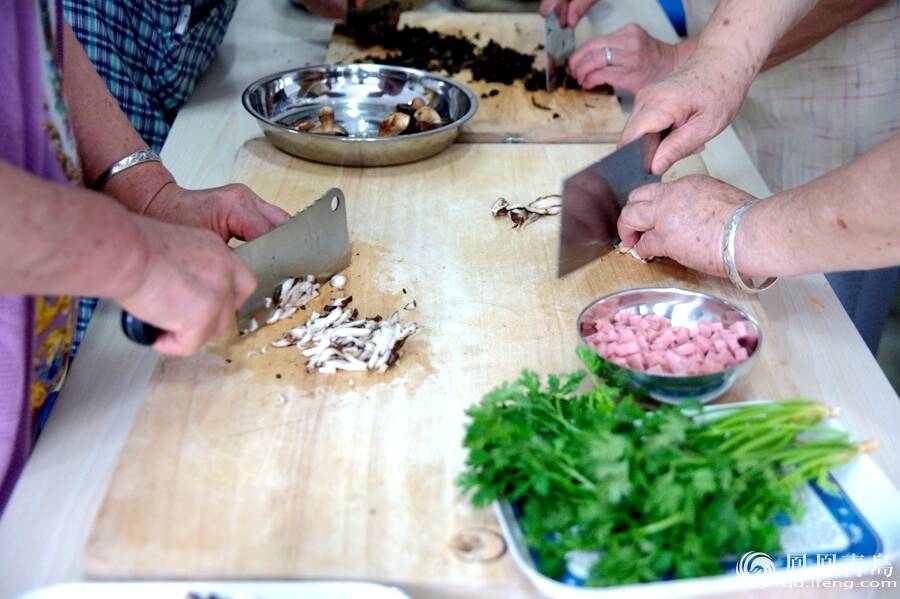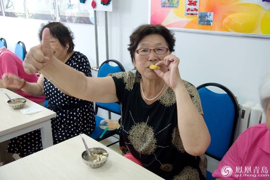 在大家共同的努力下,一堂“有吃有喝,有玩有乐”的美食课让大家意犹未尽,老人们还一时兴起唱起了自己改编的歌曲。“千(哪)朵花呀,万(哪)朵,比不上(那)幸福中心温暖的花,共产党培育的幸福花……”王萍阿姨将《众手浇开幸福花》与生活相结合改编,大家打拍合唱,女高音男低音交错和谐,唱出的不只是歌曲,更是幸福的味道。
