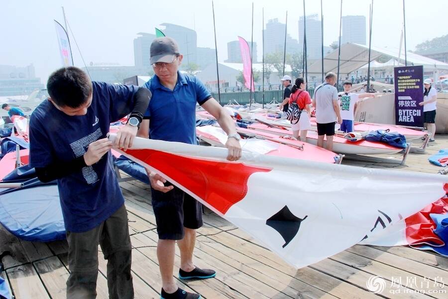 7月13-16日,由中国帆船帆板运动协会主办,市南区人民政府、市南区教体局等承办的“梅沙教育杯”全国帆船青少年俱乐部联赛青岛站暨市南区“区长杯”帆船邀请赛将在青岛奥帆基地南下水坡道举行。凤凰网青岛提前一天来到比赛现场,看到参赛的家庭组成员正在紧张的备赛中。
