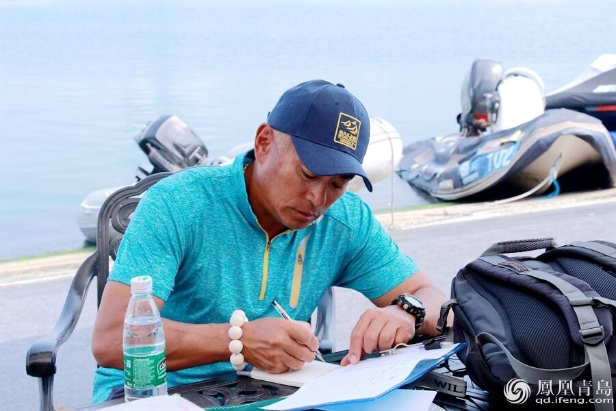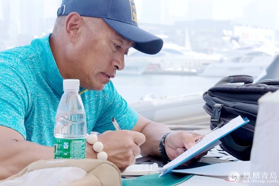 “梅沙教育杯”全国帆船青少年俱乐部联赛青岛站暨市南区“区长杯”帆船邀请赛的总裁判刘波正在现场核对明天比赛的资料。