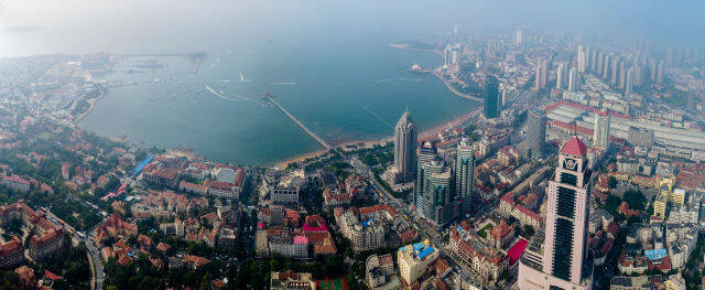 青岛市地处山东半岛东南部沿海,是全国首批沿海开放城市、国家历史文化名城,有“世界啤酒之城”和“世界帆船之都”的美誉。进入8月,青岛迎来旅游旺季。新华社记者通过无人机的视角,展现这座海滨度假胜地的独特魅力。↑图为远眺青岛湾(拼接照片,8月10日摄)。新华社记者 王建华 摄