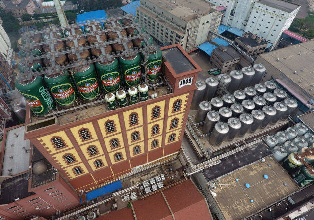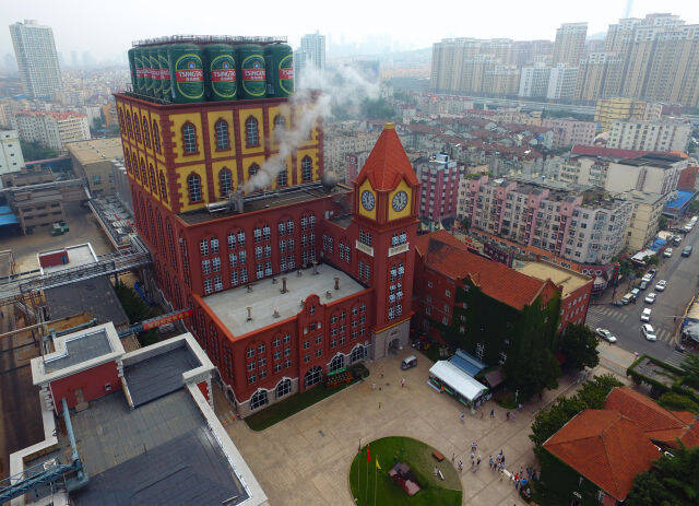 ↑这是青岛啤酒厂(8月10日摄)。新华社记者 李贺 摄