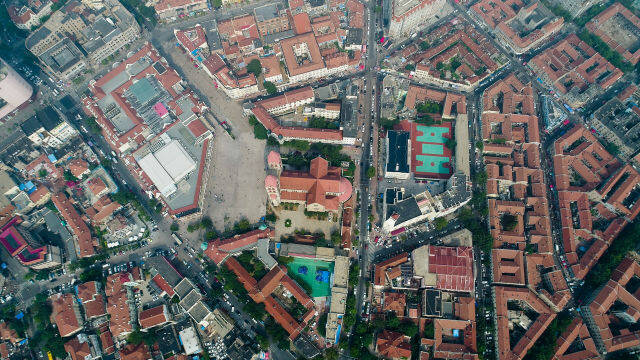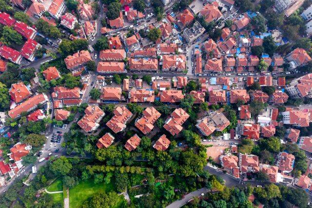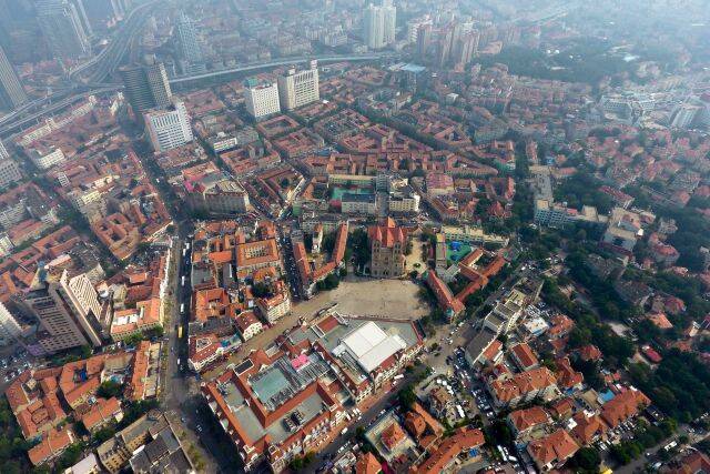 ↑俯瞰青岛德式建筑群(8月10日摄)。新华社记者 郭绪雷 摄
