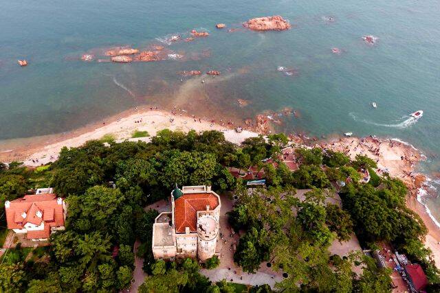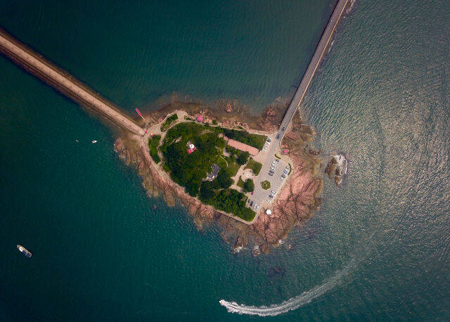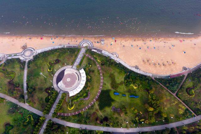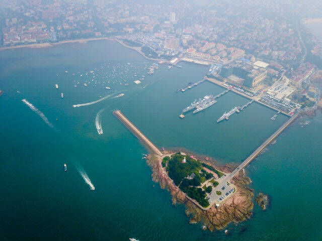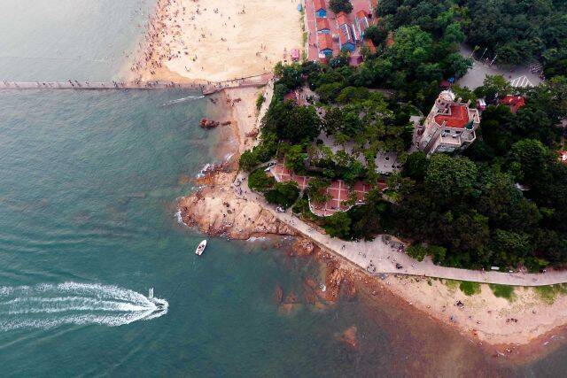 ↑俯瞰小青岛(8月10日摄)。新华社记者 王建华 摄