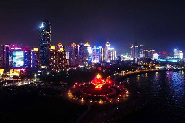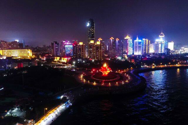 ↑这是青岛市区夜景(8月9日摄)。新华社记者 郭绪雷 摄