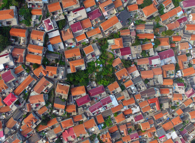 ↑这是青岛崂山脚下的青山村民居(8月10日摄)。新华社记者 李贺 摄