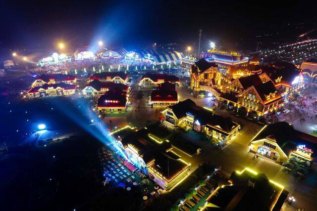 ↑这是夜色中的青岛国际啤酒节现场(8月8日摄)。新华社记者 郭绪雷 摄