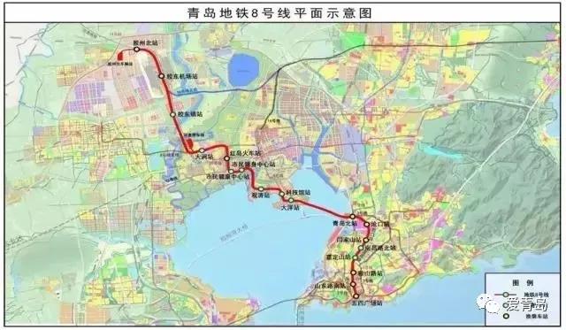 8号线主线串联了胶州市、红岛高新区、李沧区、市北区、市南区等五个行政区,是连接青岛新机场、北岸城区、东岸城区的快速骨干线路。